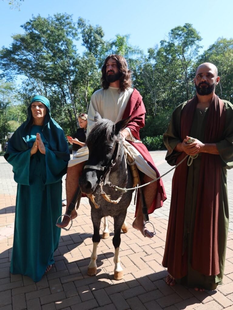 Durante a celebração, um dos momentos mais marcantes foi a realização de uma pequena procissão, que relembrou a entrada de Jesus em Jerusalém. A encenação contou com a participação de atores do grupo Religare. Representando a passagem bíblica, Jesus Cristo foi conduzido em um burrinho, acompanhado por José e Maria.